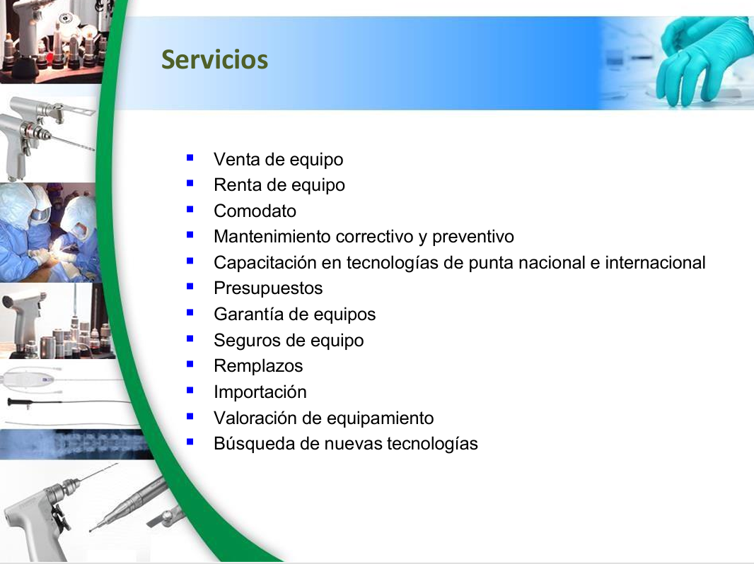 de productos y servicios a los hospitales , otorgando la mejor tecnología y